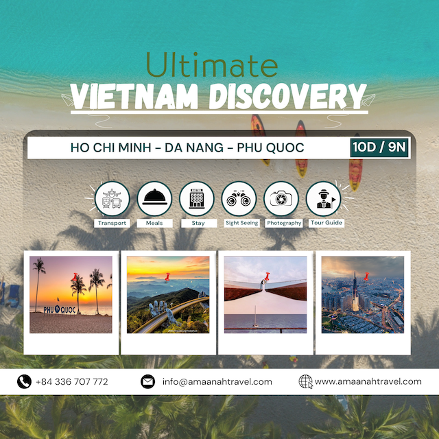 Ultimate Vietnam Discovery 10 Days 9 Nights: Ho Chi Minh City – Da Nang – Phu Quoc Island Experience the very best of Vietnam on this unforgettable 10-day journey combining vibrant city life, rich cultural heritage, and tropical…