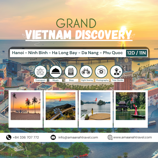 Grand Vietnam Discovery 12 Days 11 Nights: Hanoi – Ninh Binh – Ha Long Bay – Da Nang – Phu Quoc Island Discover the full beauty of Vietnam from north to south on this comprehensive 12-day, 11-night journey. This unforgettable private tour…